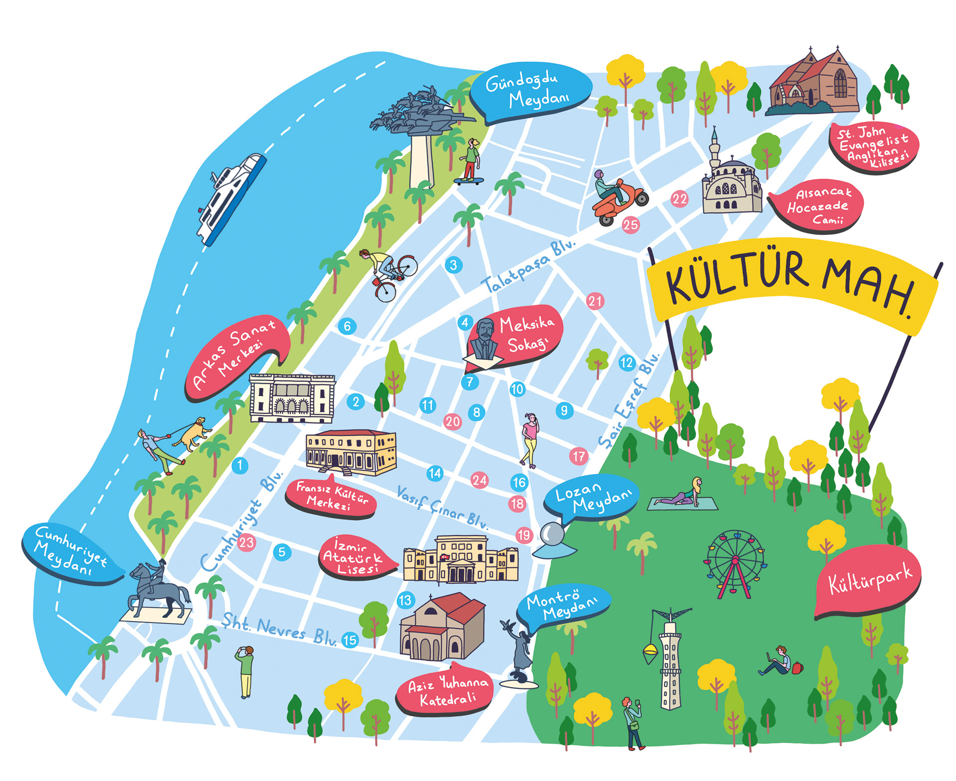 Publiko Guide is Izmir city guide project that created by Pübliko agency. Kültür Mahallesi is the first of the series and it includes illustrated map of the neighborhood and boutique restaurant/cafe/shop recommendations.